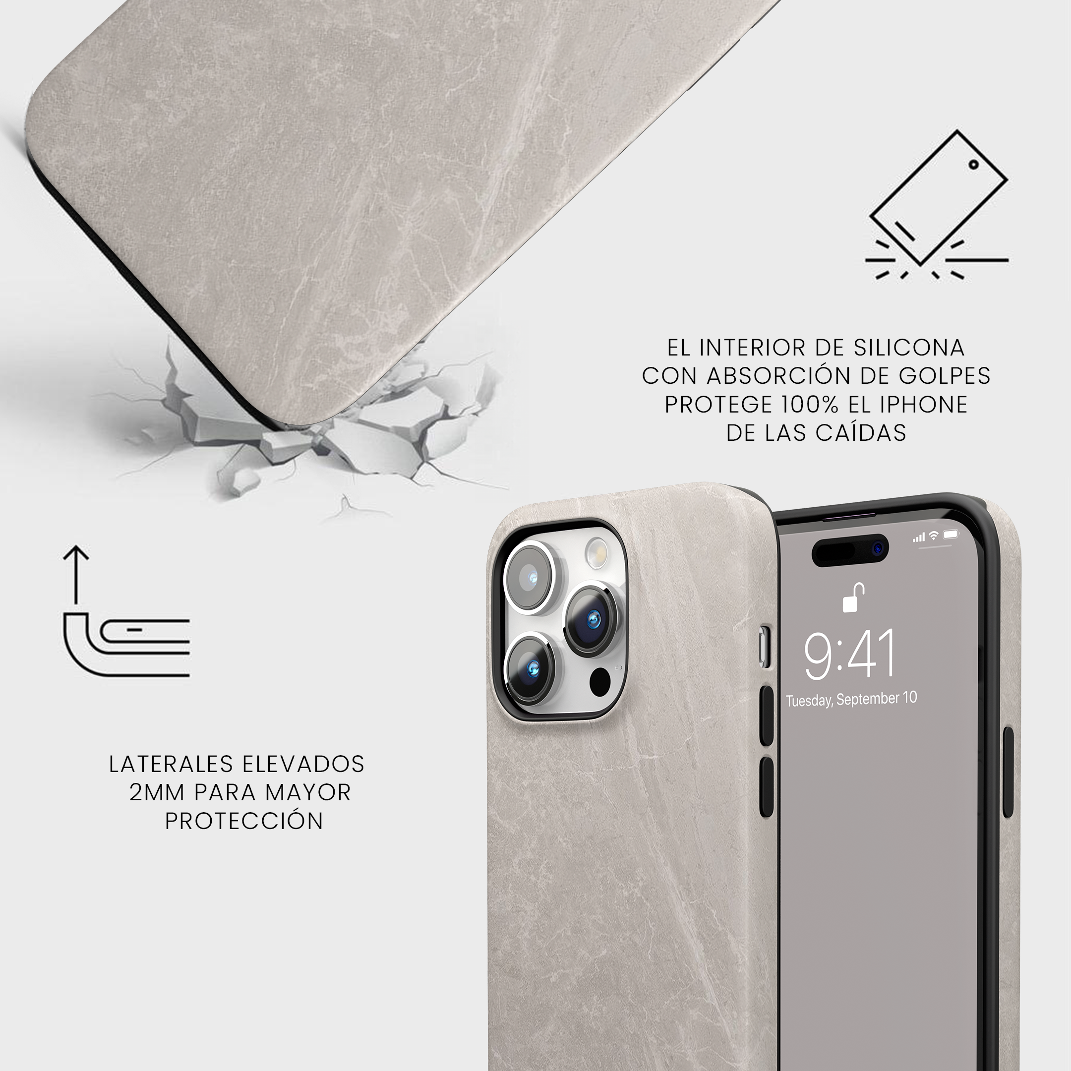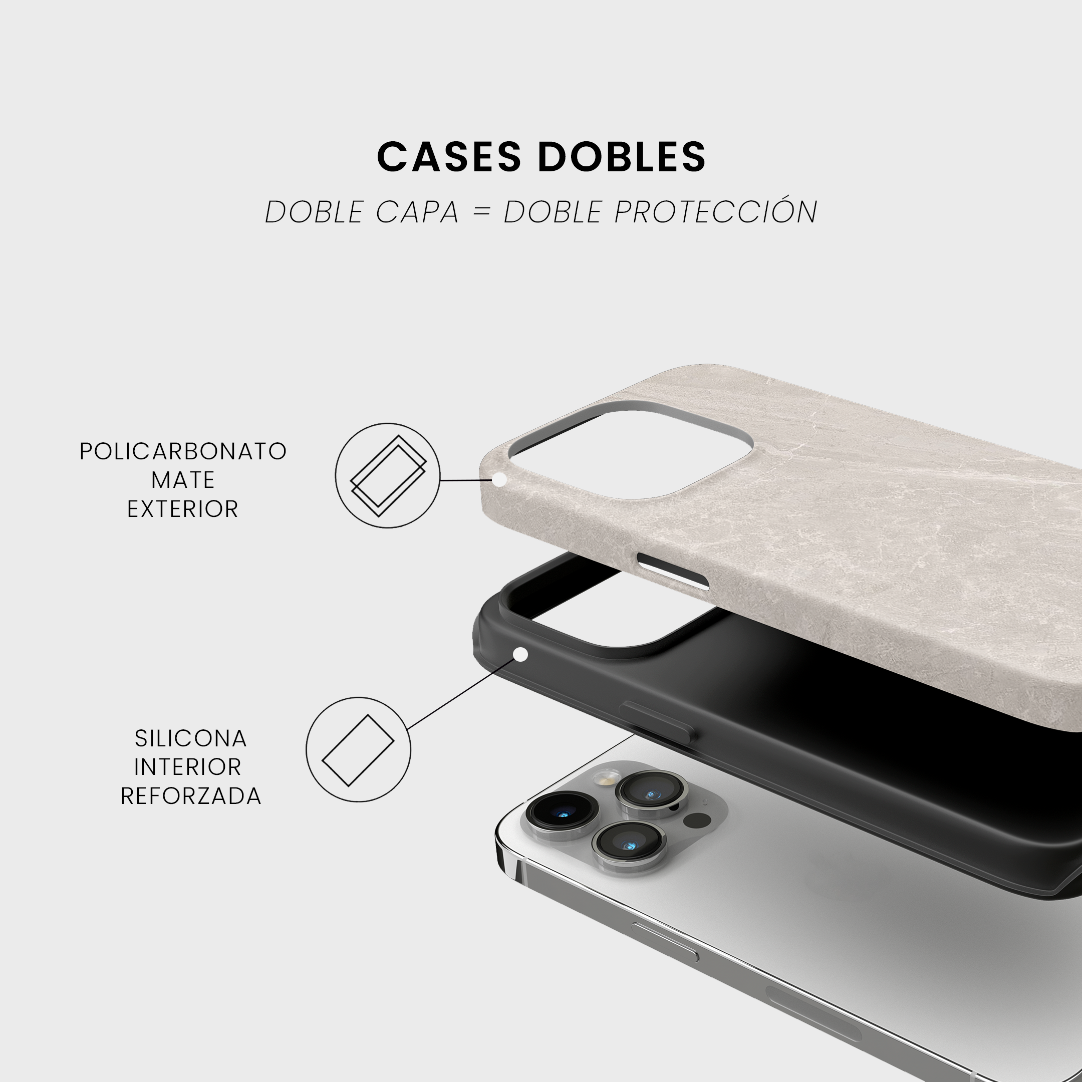 Son 2 capas que protegen 100% todos los ángulos, botones y cámara del iPhone. La capa interna está realizada en TPU reforzado color negro con absorción de golpes, los laterales están elevados 2 mms para una mayor protección de la pantalla.